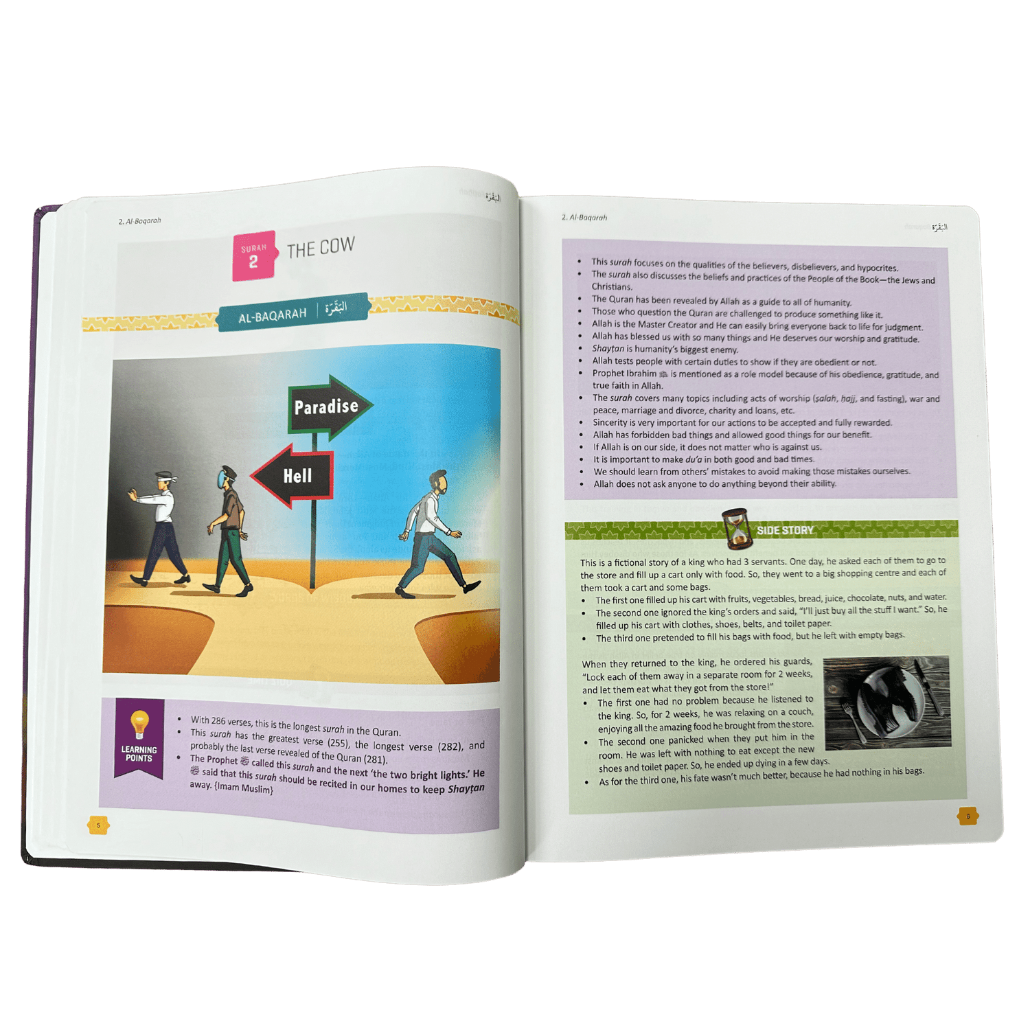 - IT EMPOWERS TEACHERS, PARENTS AND GUARDIANS TO EXPLAIN PASSAGES IN A SIMPLE WAY THAT MOTIVATES CHILDREN TO LEARN, LOVE AND LIVE THE MESSAGE OF THE QURAN.