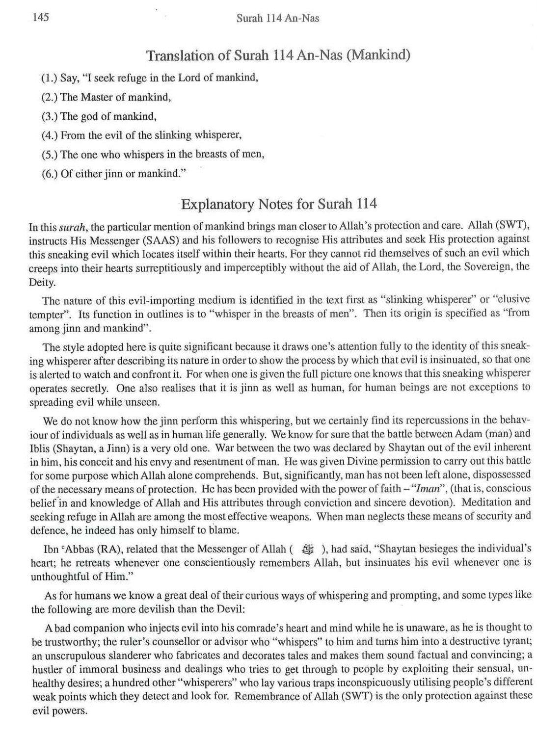 Offers readers an accessible English translation of the final section of the Qur’an, accompanied by explanatory notes and study insights. Covering short, powerful chapters often recited in daily prayers, this edition helps readers understand key themes such as faith, worship, morality, and the afterlife. Designed for both study and reflection, it serves as a valuable resource for students, educators, and anyone seeking a deeper connection with the Qur’an’s message.”