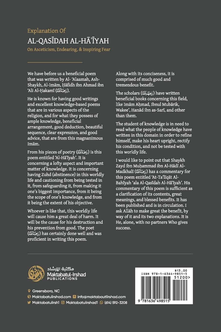 Al-Qasidah Al-Haiyah – Poetic Work on Zuhd & Worldly Abstinence (Paperback) | Ash-Shaykh Ḥāfidh ibn Ahmad