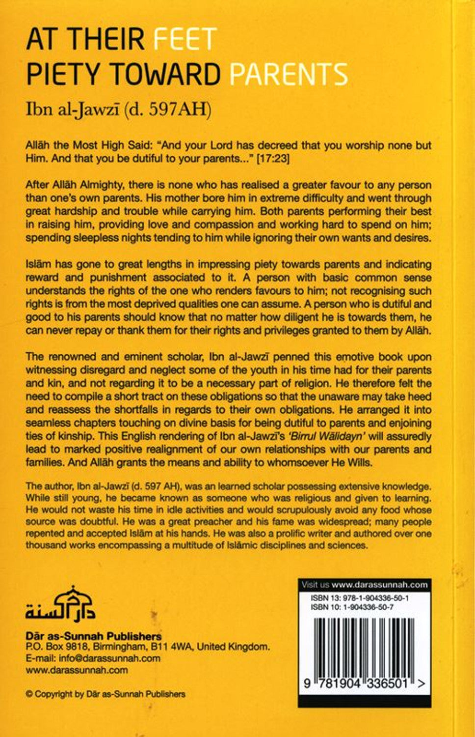 DAR AS SUNNAH CLASSIC COLLECTION AT THEIR FEET PIETY TOWARDS PARENTS Ibn al-Jawzi (d. 597AH) دار السنة