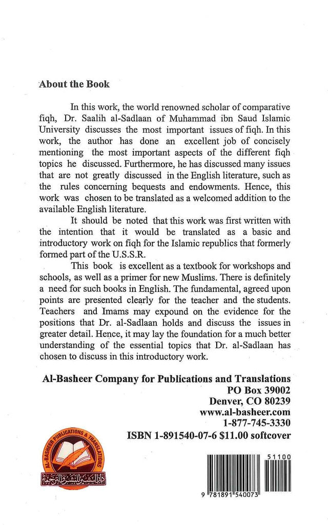Fiqh Made Easy by Dr. Saalih ibn Ghaanim al-Sadlaan is a clear, concise, and accessible guide to the most important issues of Islamic jurisprudence (fiqh). Drawing from comparative fiqh, the author explains key topics such as purity, prayer, fasting, zakah, and pilgrimage in the first part, then moves to interpersonal transactions like buying, leasing, bequests, and endowments. He also addresses family law, including marriage and women’s issues.