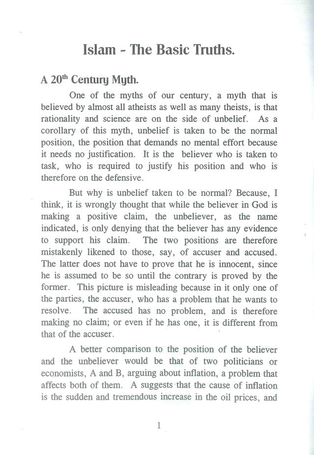 This booklet was written to explain the most fundamental truths of Islam — the beliefs and principles that form the foundation of the Muslim faith — in a concise, clear, and accessible manner for all readers.