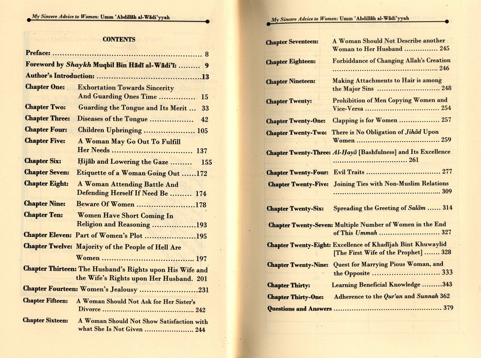 My Sincere Advice to Women by Umm Abdillah al-Waadiyyah
