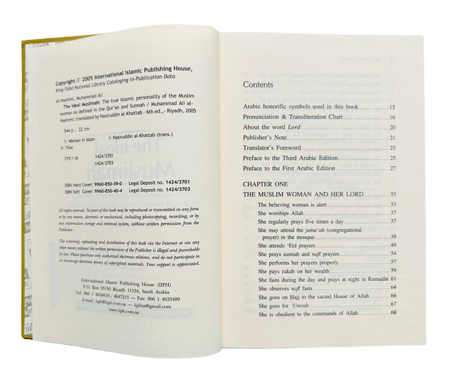 The Ideal Muslimah is proud of the great position that Islam has given her among humanity. She performs her duties knowing that her role is clearly defined and that her rights are still, even today, greater than what any other ideology has provided. She is a woman of moral excellence, true to her nature, not confused by alien and morally bankrupt ideas. She preserves her self-respect and dignity through her piety in obedience to ALLAH and his Messenger صلی الله علیه وآلهِ وسلم. She is the role model that every true believer hopes to emulate. This comprehensive Work by Dr, Al. Hashimi is a valuable contribution to our English readers who will find the knowledge contained therein truly beneficial and inspiring.
